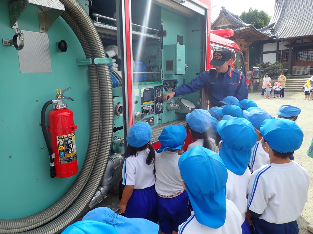 総合避難訓練に参加した際は、消防車と救急車を見学させてもらい「これは何?」と色々な物に興味津々。